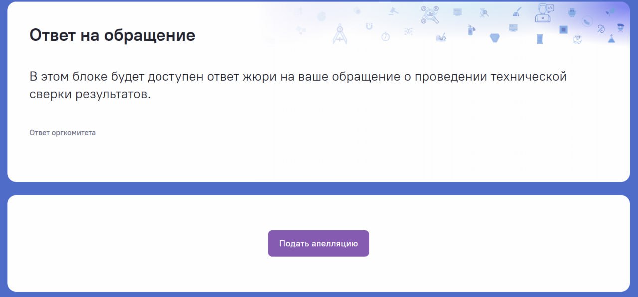 Апелляция проходит в личных кабинетах в виде вопросов жюри.